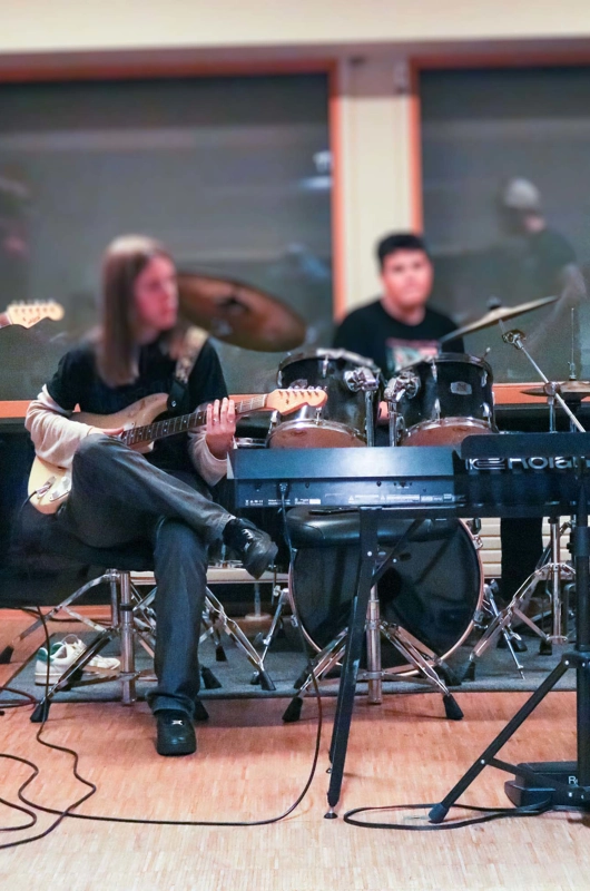 Undervisningen fokuserer på sammenspil og samarbejde i et band. Vi arbejder med musik fra forskellige genrer som rock, pop, funk og blues og lægger vægt på rytme, dynamik og musikalsk samspil. Eleverne lærer at lytte til hinanden og skabe et fælles musikalsk udtryk.
